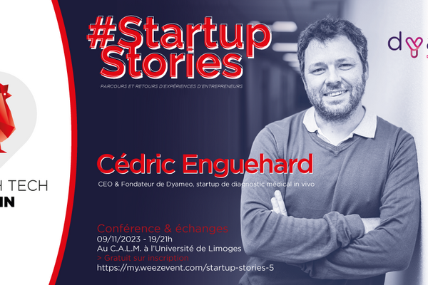 La Communauté French Tech Limousin a le plaisir d’organiser la 5ème édition des conférences thématiques Startup Stories et d’inviter pour cette occasion Cédric Enguehard, CEO et Fondateur de Dyameo, startup de diagnotic médical in-vivo.