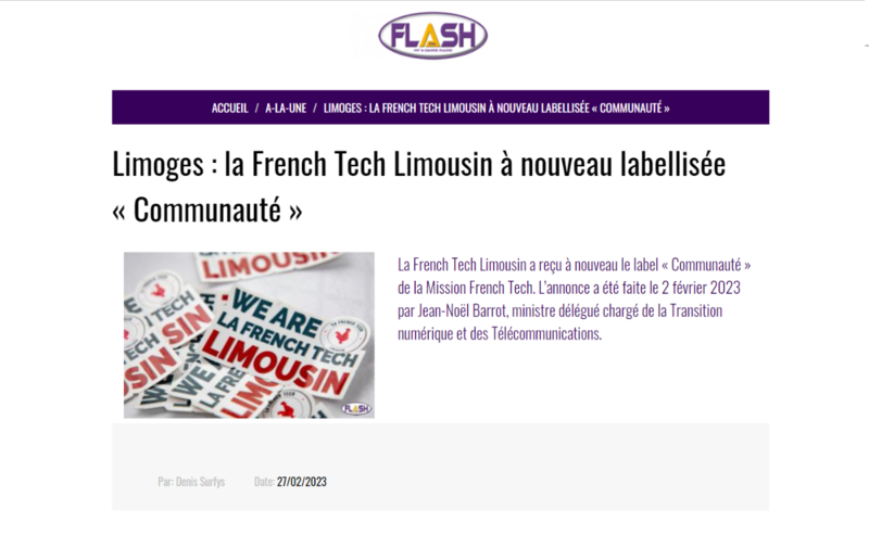 Forte de son bilan d’actions des 3 années passées et de son projet pour les 3 années à venir, La French Tech Limousin a reçu à nouveau le label “Communauté” de la Mission French Tech ! L'annonce a été faite le 2 février dernier par Jean-Noël Barrot, Ministre délégué chargé de la Transition numérique et des Télécommunications.