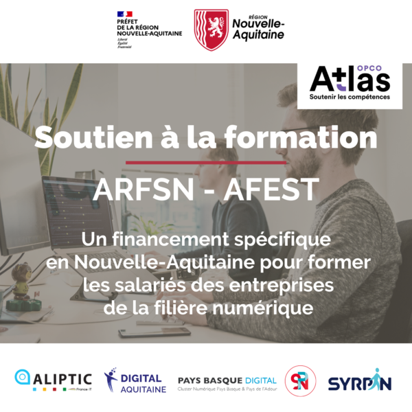 L’ALIPTIC est engagé dans une action appelée ARFSN (Action Régionale de Formation des Salariés du Numérique en Nouvelle-Aquitaine), en partenariat avec le SYRPIN, le SPN, Pays Basque Digital, Digital Aquitaine, la Région Nouvelle-Aquitaine, la DREETS (ex DIRECCTE) Nouvelle-Aquitaine et l’OPCO ATLAS (ex FAFIEC).