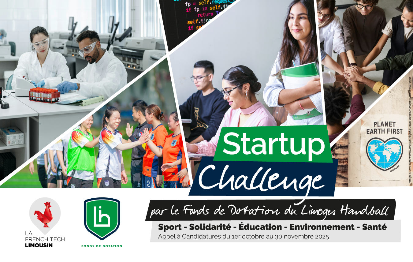 Ayant à cœur de soutenir l'innovation, les startups et les porteurs de projets engagés sur les thématiques qui reflètent les valeurs du club, le Fonds de dotation du Limoges Handball s'associe à la French Tech Limousin dans l'organisation du 1er "Startup Challenge".